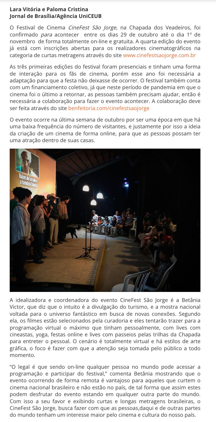 A exploração do garimpo de cristal na década de quarenta deu origem a São Jorge, em Goiás. Com a criação do Parque Nacional da Chapada dos Veadeiros nos anos 1960, o garimpo foi proibido, e o ecoturismo se tornou a principal atividade econômica da região. O fotógrafo João Fernandes testemunhou e registrou essa transformação, dedicando-se a tornar os atrativos naturais do cerrado mais acessíveis por meio da construção de mirantes.
